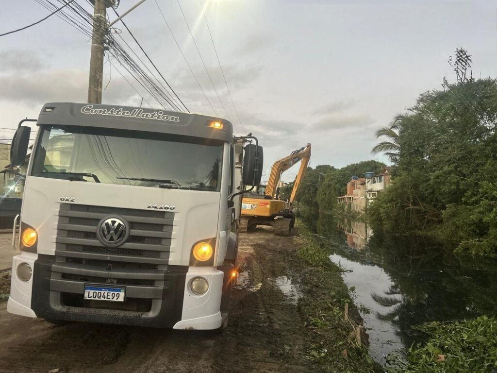 Nesta segunda-feira, os trabalhos de limpeza e manutenção contemplaram o canal na Extensão do Bosque e o Rio Jundiá, nos trechos do Âncora e Serramar. Simultaneamente, equipes atuaram na rede de drenagem de bairros como Recreio, Ouro Verde, Village, Nova Cidade e Costazul.